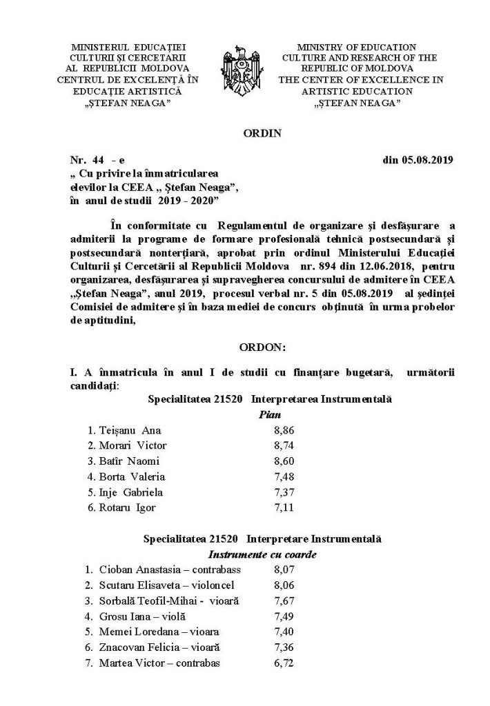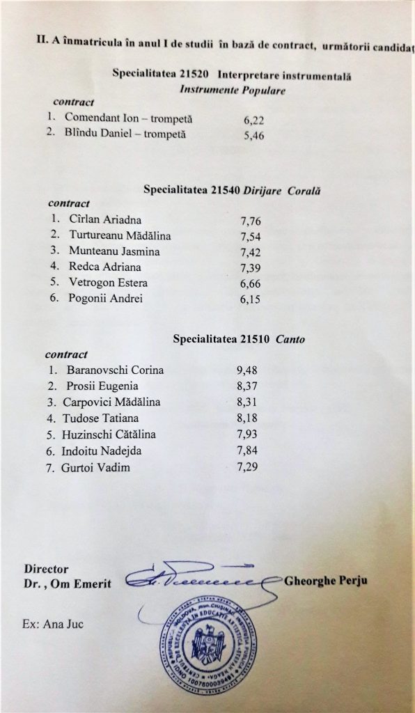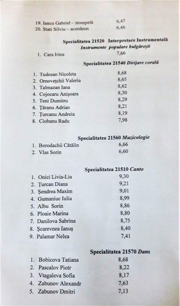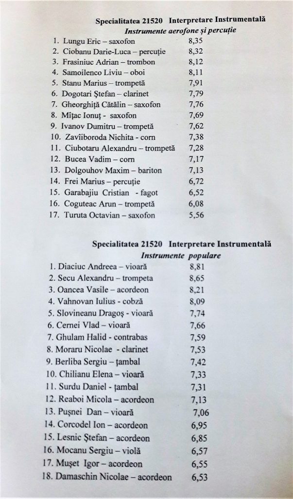 Rezultatele admiterii