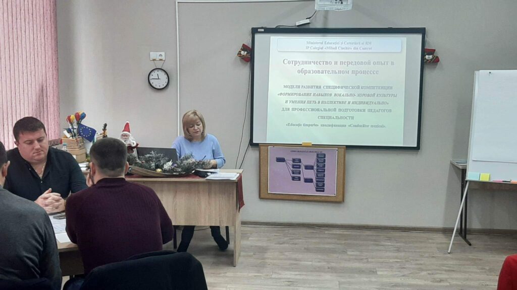 26.12.2022, în cadrul Proiectului COOP- NET – Rețele de Cooperare ale Centrelor de Excelență din Republica Moldova am organizat un Atelier de lucu cu tema:” Cooperarea instituțiilor de învățământ cu profil Arte. Strategii și bune practici în procesul educațional” la care au participat managerii și cadre didactice din IPT, domeniul Artă.La eveniment a fost prezentă doamna Magdalena Rusnac-Frăsineanu, consultant principal din cadrul Direcției învățământ profesinal tehnic al Ministerului Educației și Cercetării, care a comunicat despre necesitatea unui dialog eficient între Centrul de Excelență în Educație Artistică ” Ștefan Neaga” și instituțiile arondate. De asemenea, s-a menționat despre aderarea CEEA la rețeaua internațională a Centrelor de excelenta ceea ce va facilita procesul de coordonare a instituțiilor de învățământ profesional tehnic pe domeniul Arta. Activitatea a fost încheiată cu o surpriză muzicală dedicată sărbătorilor de iarnă din partea Coralei Gloria, catedra Dirijare corală și Canto.