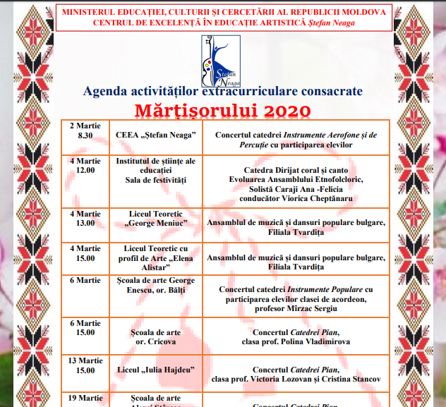 La data de 20 noiembrie 2019, ora 13:00, elevii Centrului de Excelență în Educație Artistică “Ștefan Neaga” , au participat cu un Recital Vocal cu