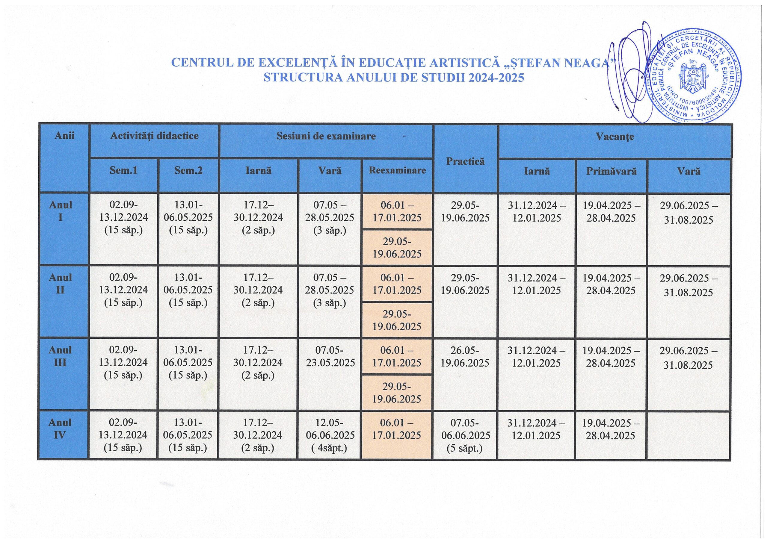 Structura anului școlar