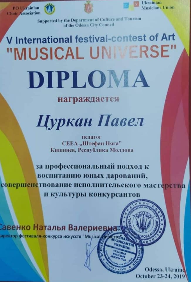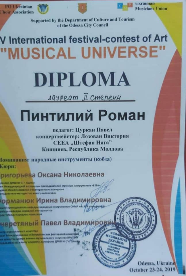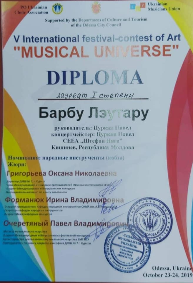 Participarea elevilor catedrei Instrumente Populare, CEEA ȘTEFAN NEAGA, clasa cobză, profesor Pavel Țurcan, la festivalul “MUSICAL UNIVERSE”, de unde s-au întors acasă cu rezultate frumoase . Felicitări și multe succese în continuare.